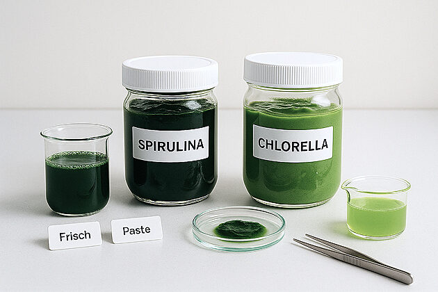 Standardisierte Spirulina- und Chlorella-Biomasse aus kontrollierter Reinraumproduktion – mit klar definierten Spezifikationen und EU-Herkunft.